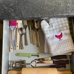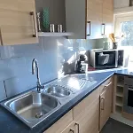 Tot de voorzieningen voor self-catering behoort een keuken met koffie- en theefaciliteiten, een koelkast, een oven.